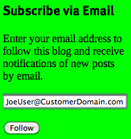 Just enter your email address into ‘Subscribe via Email’ and then click ‘Follow’ as shown on the right. ->